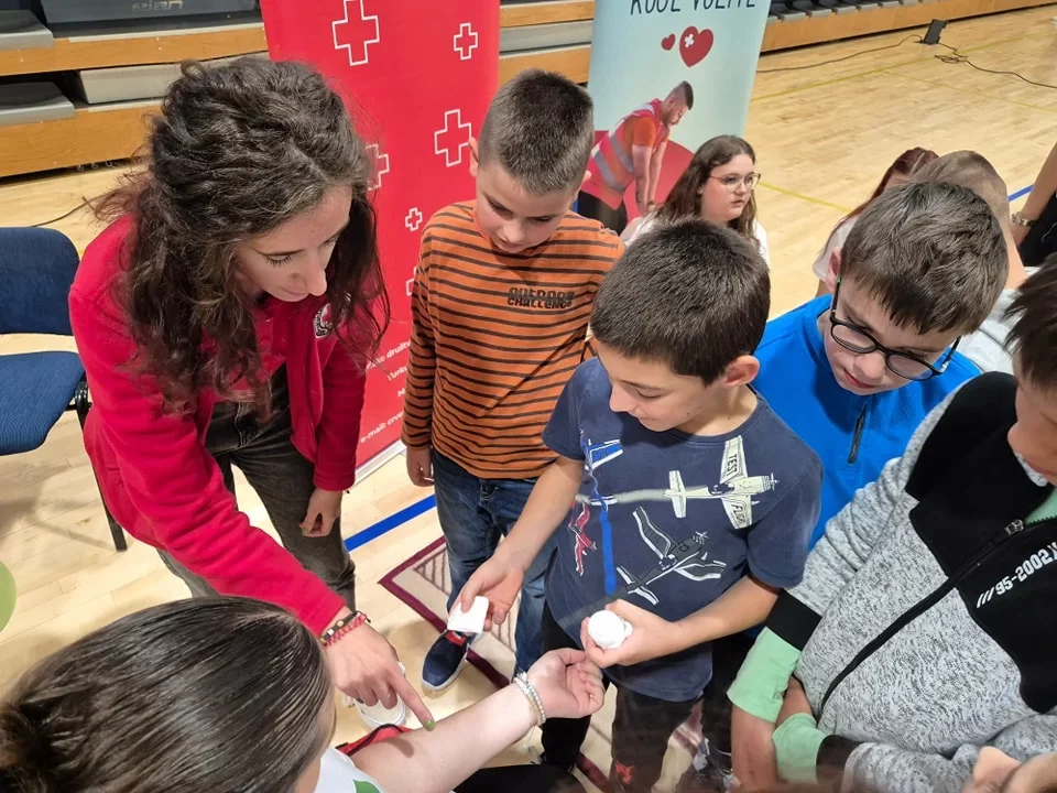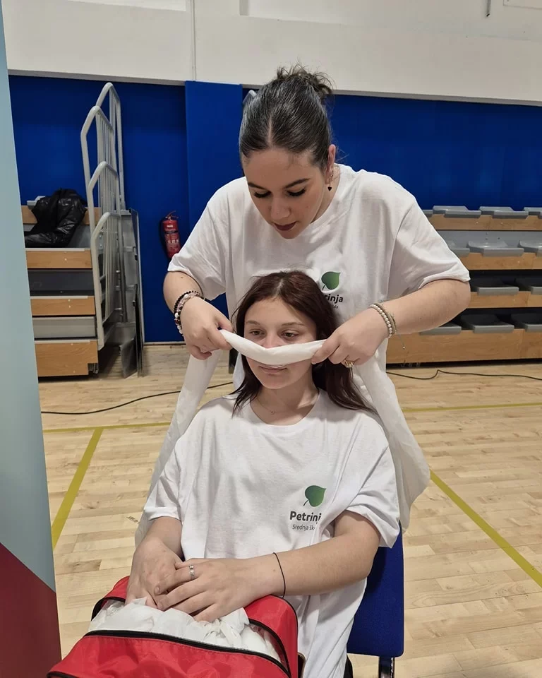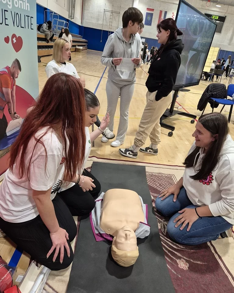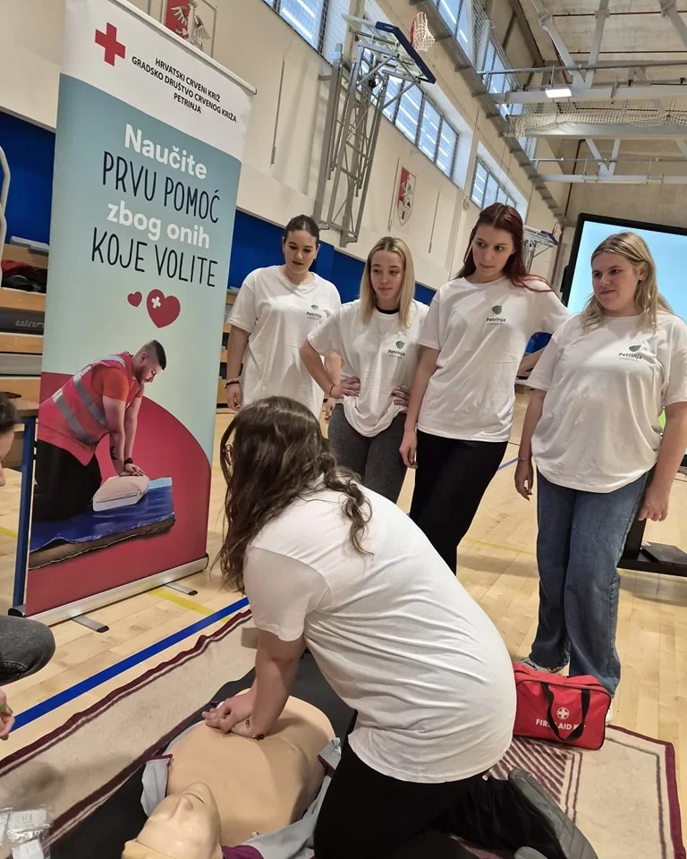 Naše curke koje su na međužupanijskom natjecanju mladih HCK osvojile drugo mjesto pokazivale su prvu pomoć učenicima ali i profesorima!
