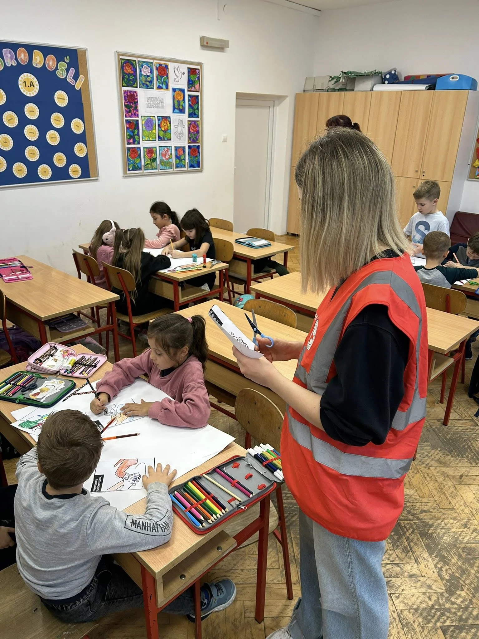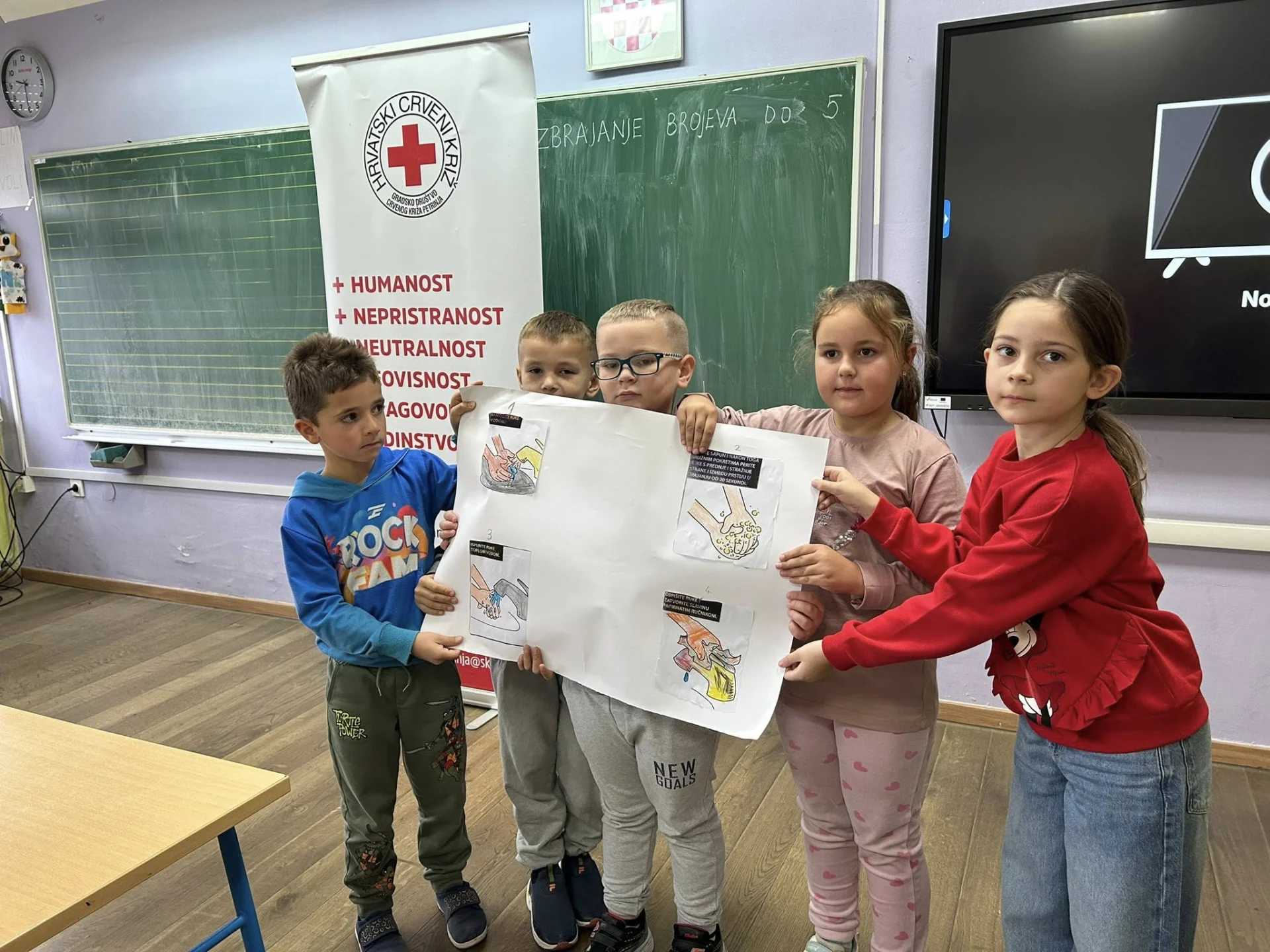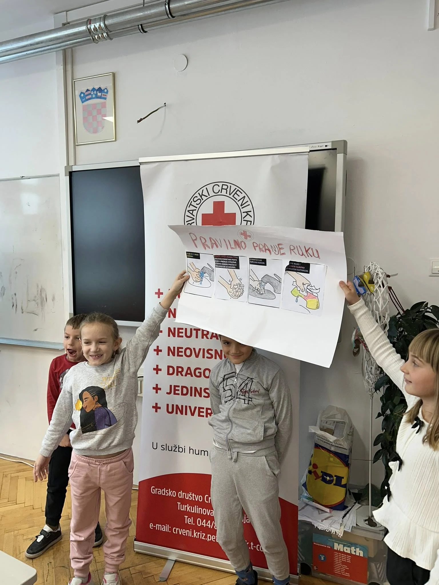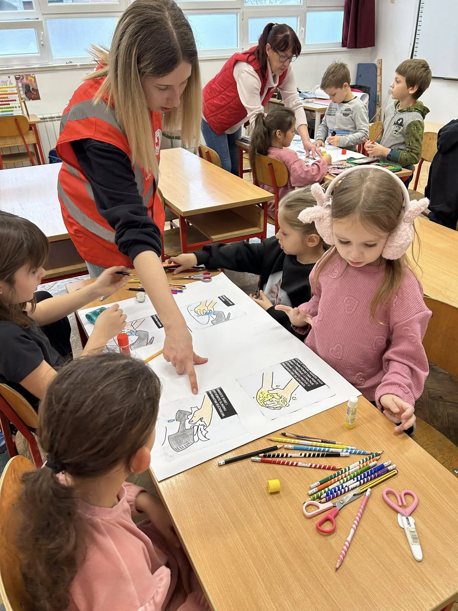 Djeca su kroz radionicu pravilnog pranja ruku i kreativne aktivnosti, poput izrade plakata, crtanja i rezanja, učila na praktičan i zabavan način. Ovakav pristup pomaže u razvoju higijenskih navika i svijesti o zdravlju od najranije dobi. ![]()