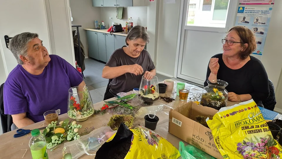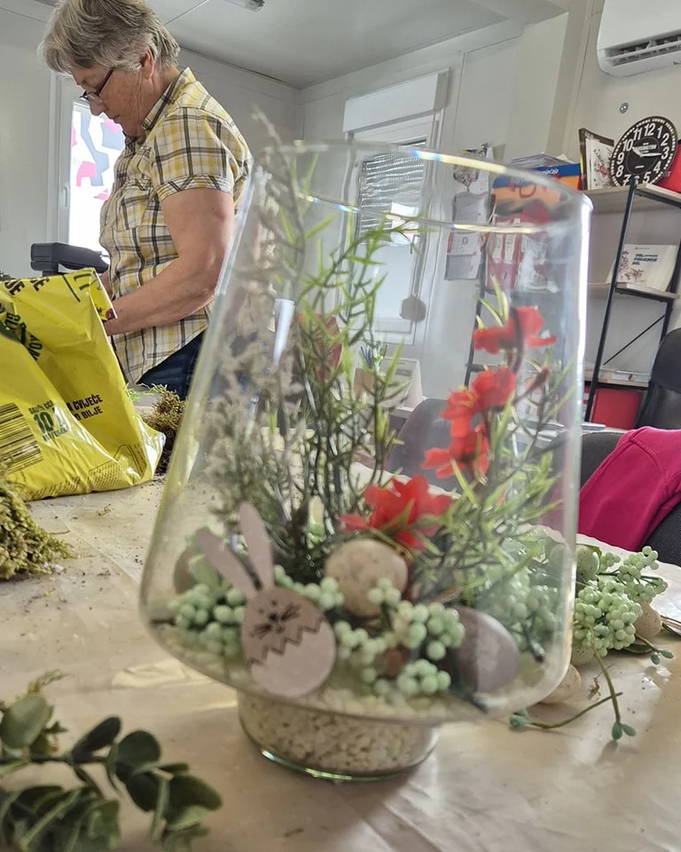 Uz druženje, kavicu sadili smo cvijeće u staklene posude i ukrašavali raznim uskrsnim dekoracijama![]()