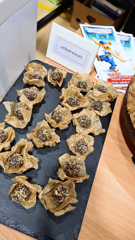 Radili smo slana i slatka jela te pića. Razne namaze kao tuna, humus, namaz od povrća, salata od tune, brusketi, zdrava čokolada, zdrava ” nutela”, kuglice od lješnjaka, datulje s kikiriki maslacem, tamnom čokoladom i soli, mali voćni štapići, sok od bazge s mentom, voda s chia sjemenkama…![]()
